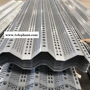 (3)挡风板安装:使用寿命15~20年。使用环境温度:-40℃至+80℃,连接采用螺钉和压板固定。挡风抑尘扳的具体尺寸、弯曲度、开孔率应根据堆场的实际情况进行设计。