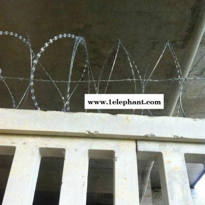 百瑞 铁路护栏网 铁路刺丝滚笼防护栅栏 高铁刺丝防御 加高蛇腹刀片滚笼 刀片刺丝刺绳大全 刀刺滚笼|刺丝滚笼|刺铁滚笼安装在铁路线路防护栅栏工程上,铁路线路防护栅栏适用于新建铁路工程、在建铁路工程和既有铁路工程改造,设计时速200km一下的铁路,一般地段采用1.8米高度钢筋混凝土防护栅栏和金属网片防护栅栏,重点区段(含动车径路)采用1.8米高度钢筋混凝土防护栅栏加0.5米热镀锌刺丝滚笼,铁路线路防护栅栏应设置在围地界以内0.5米处;时速200km以上采用2.7米高度钢筋混凝土防护栅栏和金属网片防护栅栏,安装重点同上。