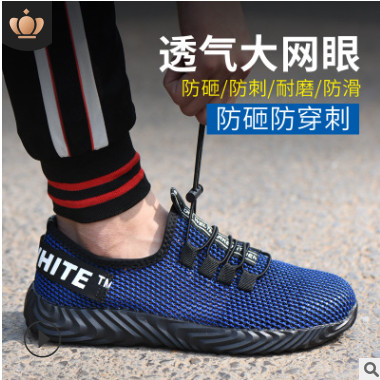 厂家直销劳保鞋男夏季轻便飞织网面透气防臭防砸防穿刺安全鞋跨境