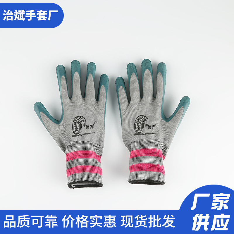 厂家供应劳保手套 塑胶带胶浸胶乳胶手套 劳动工地防滑防护手套