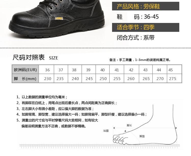 关于鞋码:标准劳保鞋尺码,比运动鞋大一码,和标准皮鞋码是一个尺码!