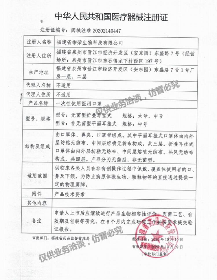 药(械)准字闽械注准20202140447