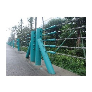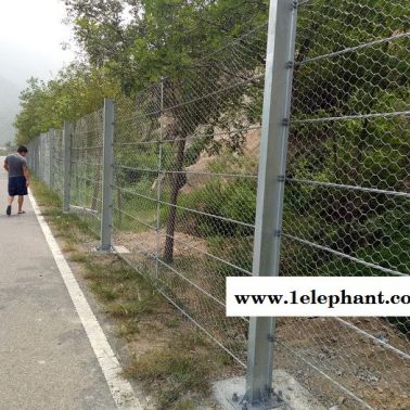 钢性被动防护网的系统常规高度一般为1.8M或2.5M,刚性防护网的立柱间距可适当增大(如3m一4m),当落石尺寸小能量大时,上下钢丝绳可能被滚石挤压变形后穿过,因此增设间距保持板材,增设薄钢板相对于减小型钢立柱的间距而言,费用大幅降低,钢丝绳间距保持钢板设置双绞六变形钢丝网设置钢丝格栅网一方面是为了拦截小粒径落石,同时还可增加系统的整体性能.目前国内常用的钢丝格栅网有单绞及双绞两种编织方式,当单根钢丝破断时,相比单绞方式,双绞格栅网不容易发生连续破坏,因此新型刚性防护网采用双绞六边形钢丝网,端柱设置斜支撑为防止端柱在受到拉力时沿着钢丝绳的方向发生倾覆,端部钢柱带有斜撑.斜撑可采用角钢或者槽钢。