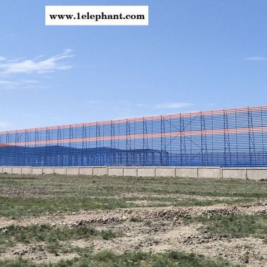 产品特点此产品采用金属原材料经机械组合模具冲孔、压制、喷塑而成,具有强度高、韧性好、抗弯曲、抗老化、抗阻燃、耐高低温、耐酸碱、承受弯曲变形能力强等优良性能;经过特殊配方和工艺制作,可根据用户需要制成各种厚度、颜色,具有使用寿命长、色彩鲜艳不易褪色等特点;综合抑尘效果良好,优于国内外同类产品。防风抑尘网不仅外形美观,维护成本低并且具备防火,防盗等优点;完全避免了以往表面覆盖、喷淋技术、全封闭几种措施反复投资、耗资巨大、受场地和作业要求限制、抑尘效果不佳的问。此项技术造价低、设置灵活、安装简单。一次投资,长期受益。挡风抑尘墙设置后不仅使污染严重的地区环境得到有交的改良,而且实施挡风抑尘墙的煤场每年还节省煤数千吨,在取得良好社会效益的同时又获得了的经济效益,美观整齐的挡风抑尘墙也成为这些地区一道怡人的风景线!