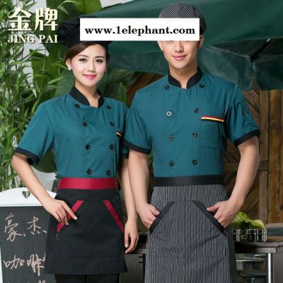 厨师服 夏装短袖 拼领厨星级酒店后厨男女工作服 烧烤自助餐CSF048