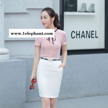 夏季新款职业装女衬衫短袖 大码修身蝴蝶结上衣纯色工作服