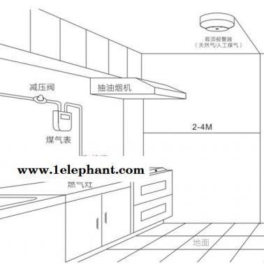 天然气,城市煤气因其比空气轻,会悬浮于天花板,故报警器应安装在低于天花板0.3-1.2米,距气源半径1.5米以内的合适之处