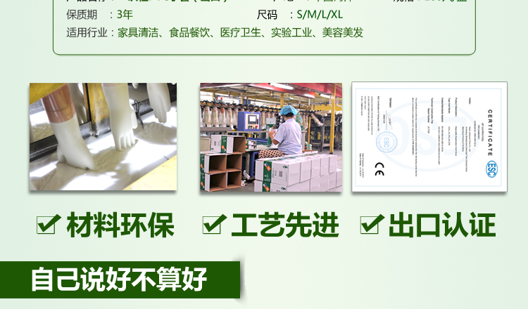 玉手家务清洁手套无毒无异味可接触食品9寸 S/M/L/XL型号 手部防护