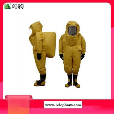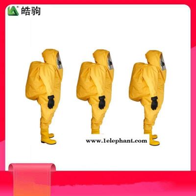 防化服是一种由头罩、连衣裤、防化手套、防化胶靴连为一体的防化服装,使用时与正压式消防空气呼吸器配合使用。