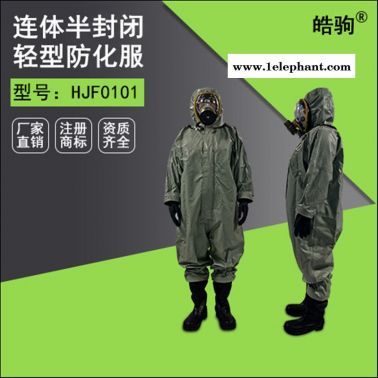 厂家供应皓驹HJF0101连体轻型半封闭黄色耐酸碱防化服