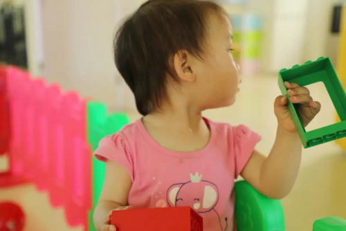 小女孩特别喜欢跟小伙伴们一起玩玩具