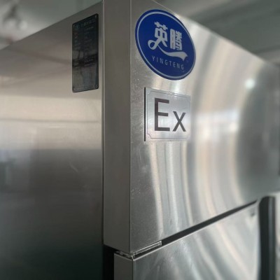英腾不锈钢防爆冰箱是重庆英腾环境科技针对高危场景定制的低温存储设备,机身采用304 不锈钢材质,耐腐蚀、易清洁,适配化工、军工等 1 区、2 区易燃易爆场所,防爆标志符合 ExdibmbIICT4Gb 国标标准。
